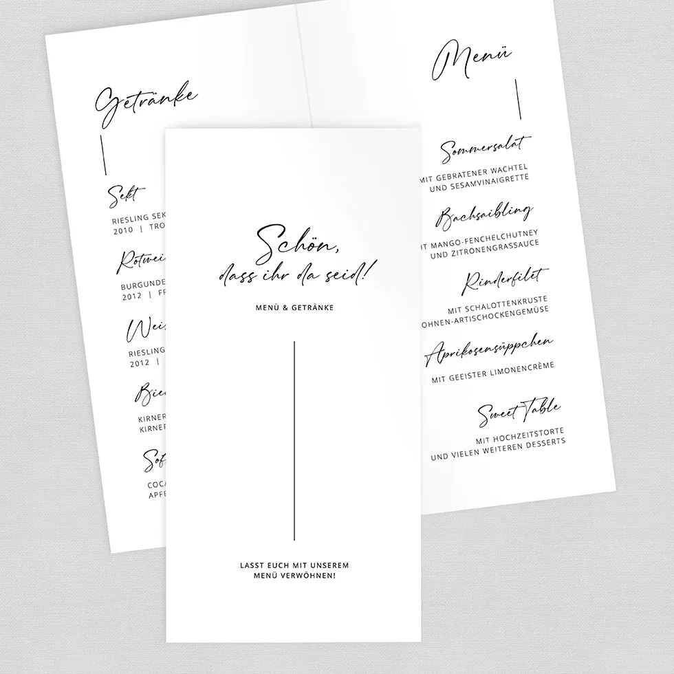 Eure persönliche Menükarte wird bei uns individuell perfekt abgestimmt auf euer persönliches Design und das gewählte Papier gedruckt, damit ihr immer das beste Ergebnis erhaltet.