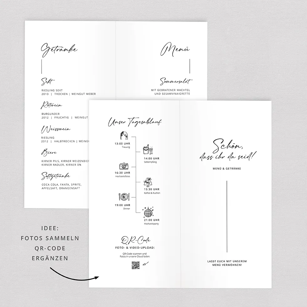 Der Clou: Wenn ihr möchtet, könnt ihr sogar den Tagesablauf und einen QR-Code zum Fotosammeln ergänzen