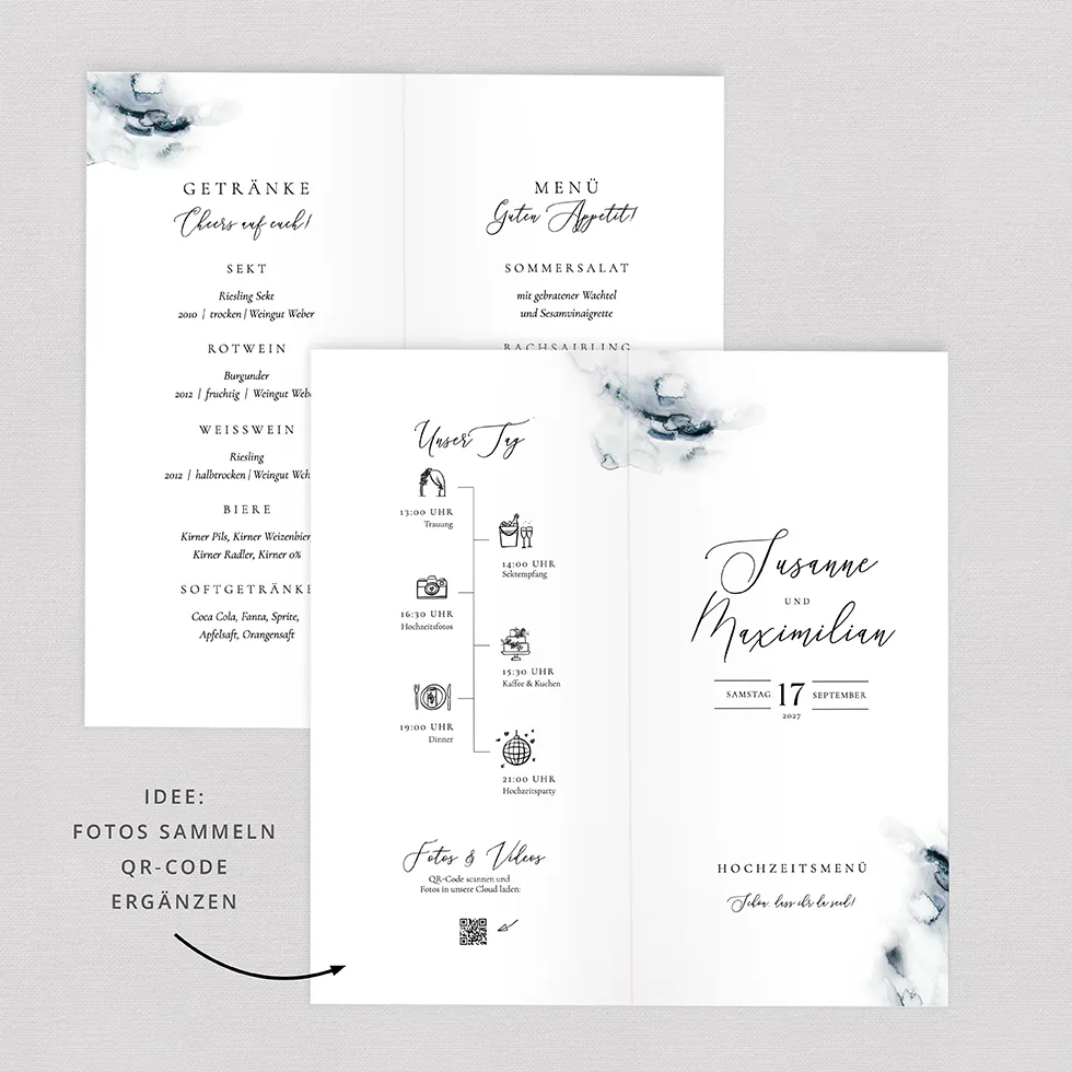 Der Clou: Wenn ihr möchtet, könnt ihr sogar den Tagesablauf und einen QR-Code zum Fotosammeln ergänzen