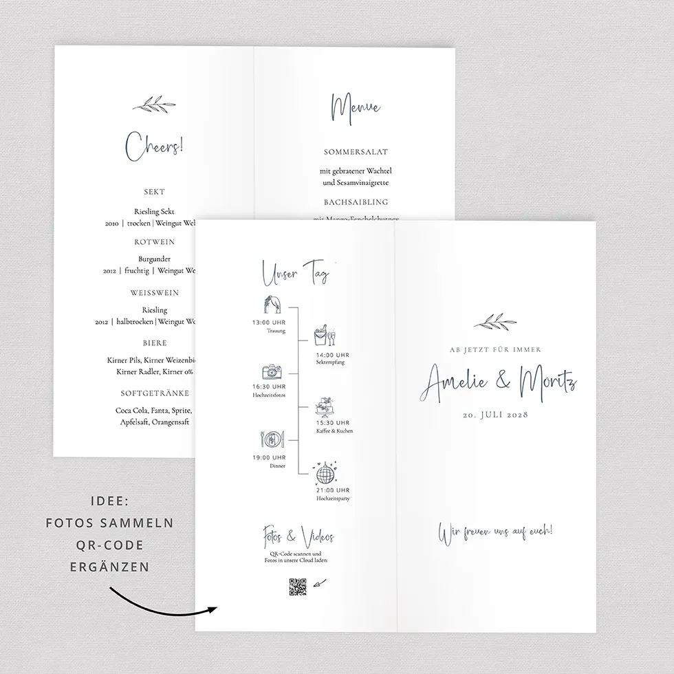 Optional könnt ihr eure Menükarten auch als Download (PDF, JPG und PNG in hochauflösender Qualität) zum Selberdrucken erhalten und mit eurem Heimdrucker, im Copyshop oder im Druck-Shop drucken.