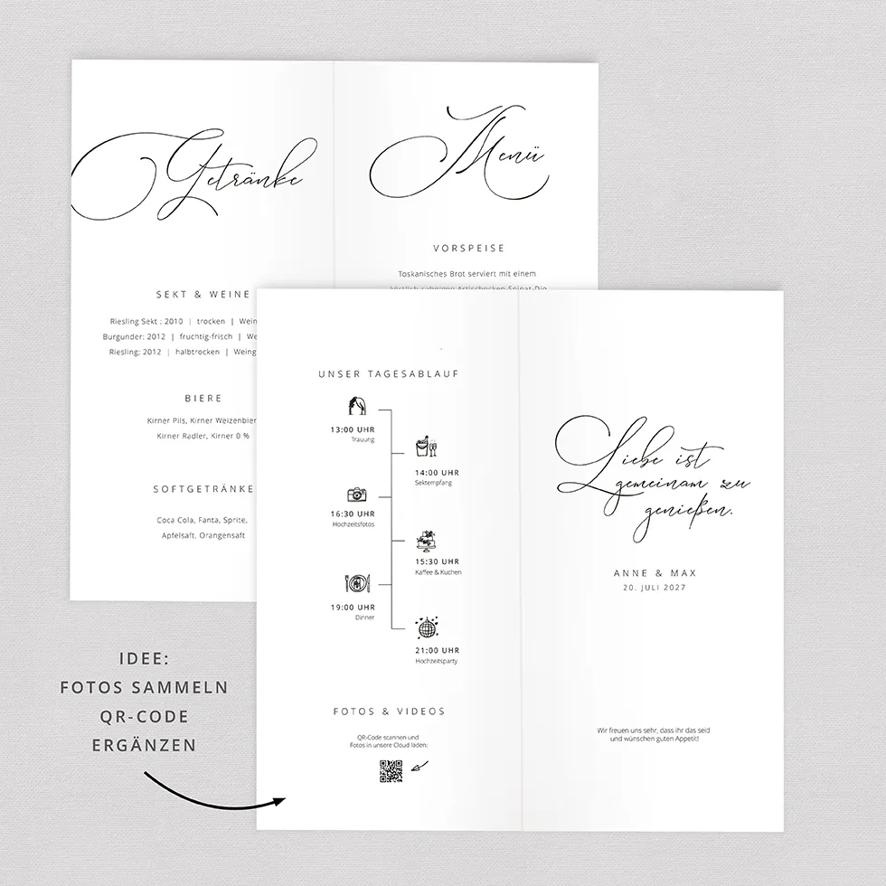 Der Clou: Wenn ihr möchtet, könnt ihr sogar den Tagesablauf und einen QR-Code zum Fotosammeln ergänzen