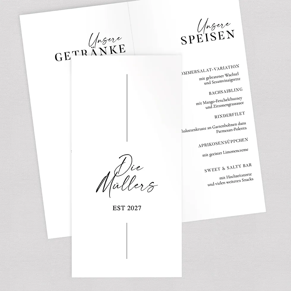 Eure persönliche Menükarte wird bei uns individuell perfekt abgestimmt auf euer persönliches Design und das gewählte Papier gedruckt, damit ihr immer das beste Ergebnis erhaltet.
