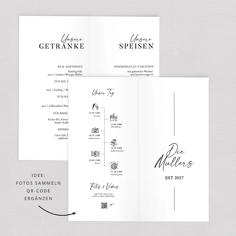 Der Clou: Wenn ihr möchtet, könnt ihr sogar den Tagesablauf und einen QR-Code zum Fotosammeln ergänzen