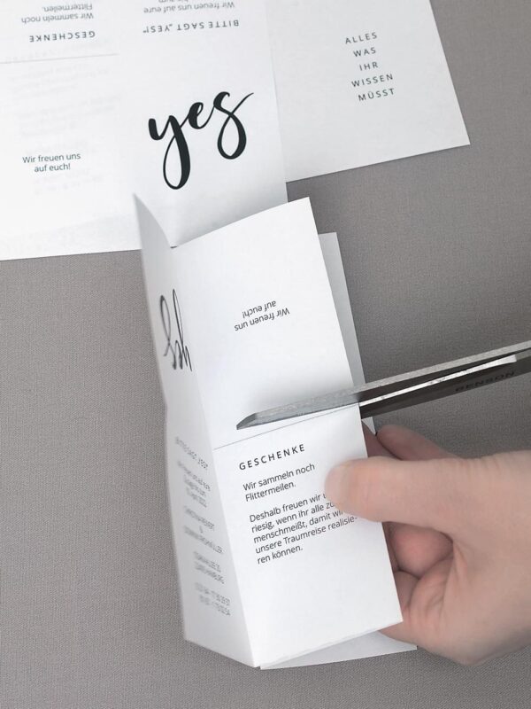 - Jetzt wird sie in der Mitte mit der Schere eingeschnitten und schon kann euer Booklet zusammengefaltet werden.