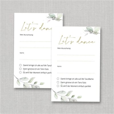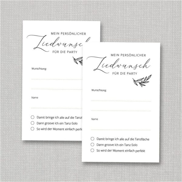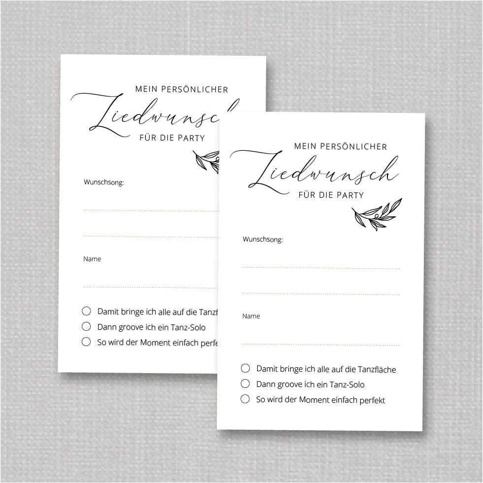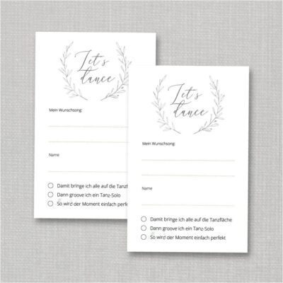 Wir finden ja, dass kein Brautpaar auf dieses Detail verzichten sollte. Denn es macht alle Gäste glücklich und hilft dem DJ, alle Wünsche zu berücksichtigen. Deshalb haben wir eine einfache wie auch clevere Lösung für euch gestaltet.