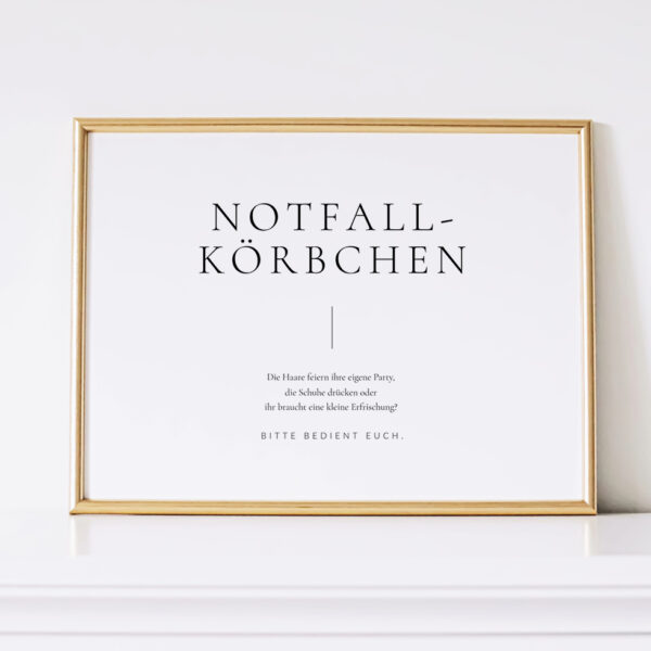 Gestaltet supereinfach tolle Notfallkörbchen Schilder für Damen und Herren bei eurer Hochzeit.