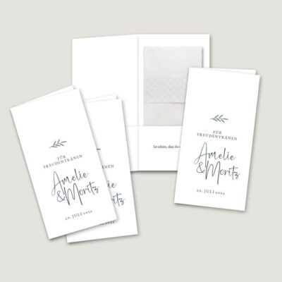 Mit unserem Hochzeitskarten Set erhaltet ihr das große Wunschlos-Glücklich-Paket mit allen Elementen, die ihr für eure Hochzeit benötigt:Von der Einladung über Accessoires für die Trauung und Feier bis hin zu den Dankeskarten ist alles beinhaltet.