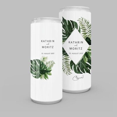 Den Text auf den schicken Slim-Line-Getränkedosen könnt ihr ganz individuell bestimmen und sie damit auch als Save the Date, Einladungskarte, Danksagung und für viele weitere Anwendungen nutzen.