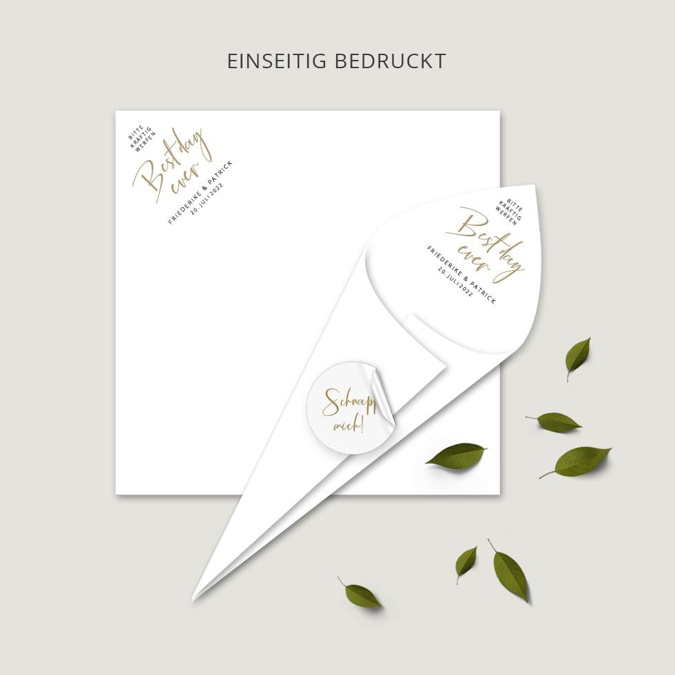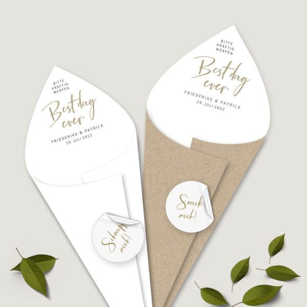 Gestaltet personalisierte Spitztüten für verschiedenste Zwecke: Als Konfetti- oder Streublumen-Tüten, Candy-Bar- oder Snack-Tüten oder für die liebevolle Verpackung von selbstgebackenen Keksen.