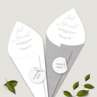 Gestaltet personalisierte Spitztüten für verschiedenste Zwecke: Als Konfetti- oder Streublumen-Tüten, Candy-Bar- oder Snack-Tüten oder für die liebevolle Verpackung von selbstgebackenen Keksen.