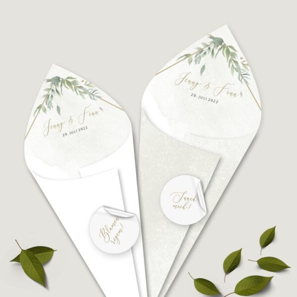 Gestaltet personalisierte Spitztüten für verschiedenste Zwecke: Als Konfetti- oder Streublumen-Tüten, Candy-Bar- oder Snack-Tüten oder für die liebevolle Verpackung von selbstgebackenen Keksen.