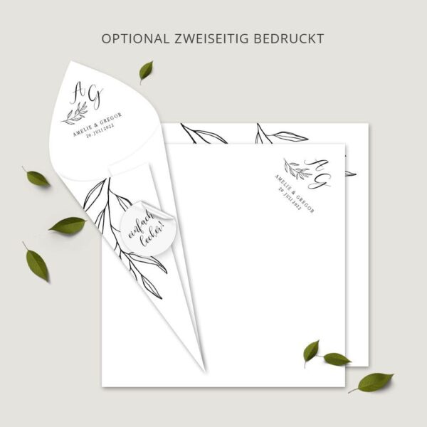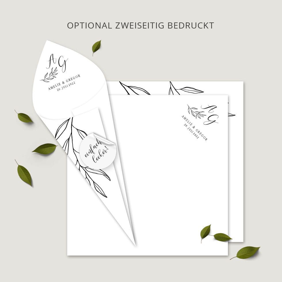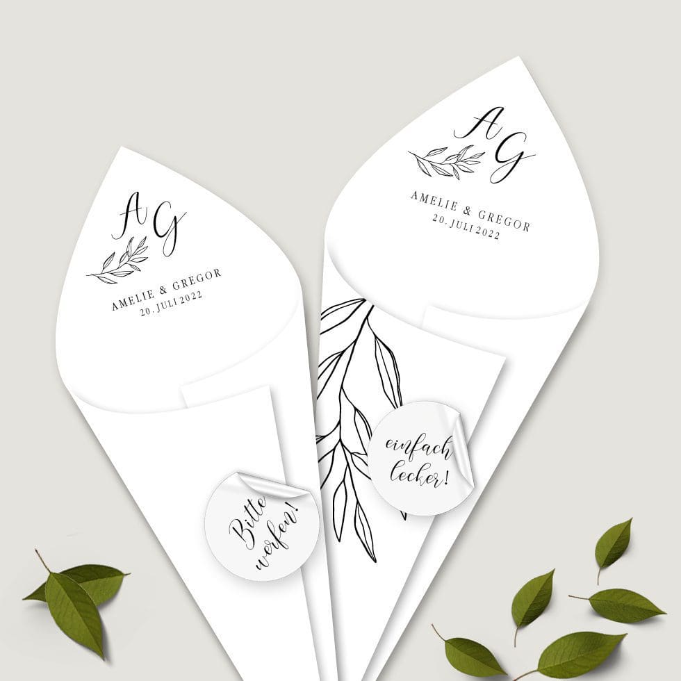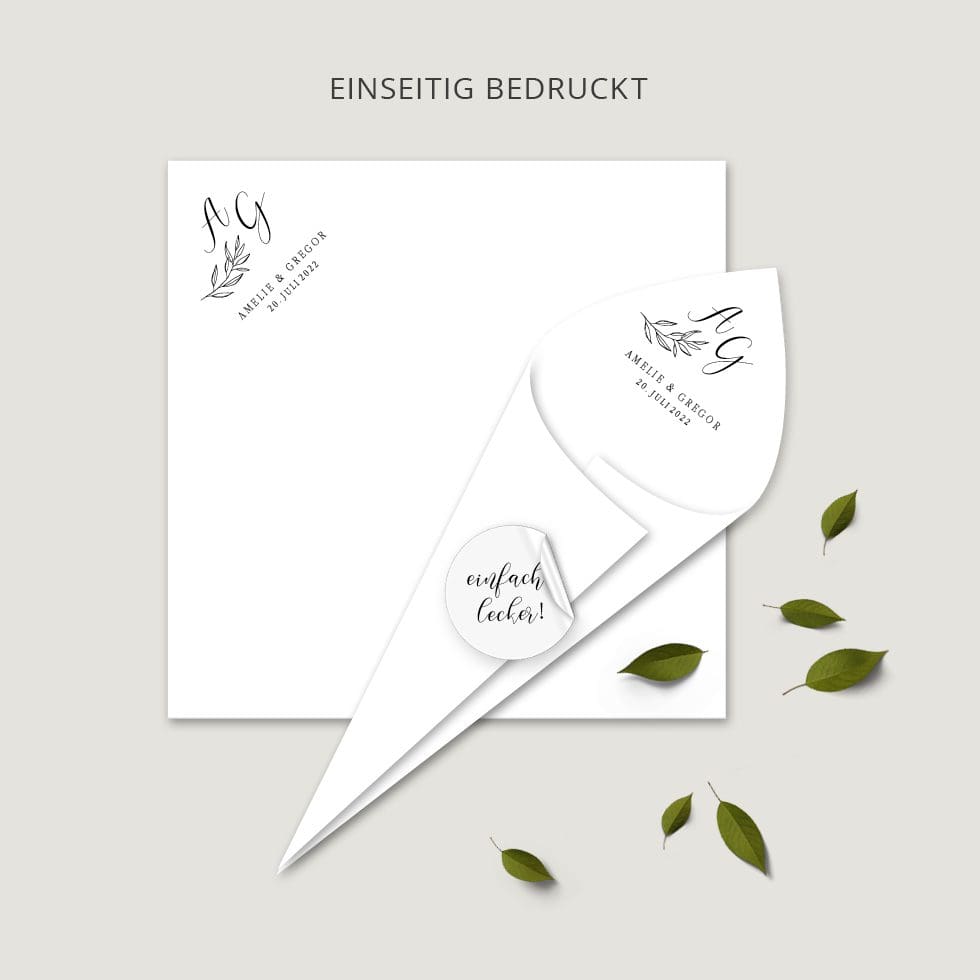 Wir drucken eure Tüten auf semimattes, glattes 170 g Papier und liefern sie plano, damit ihr sie nur noch zusammenrollen müsst.