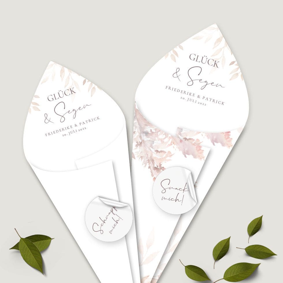 Gestaltet personalisierte Spitztüten für verschiedenste Zwecke: Als Konfetti- oder Streublumen-Tüten, Candy-Bar- oder Snack-Tüten oder für die liebevolle Verpackung von selbstgebackenen Keksen.