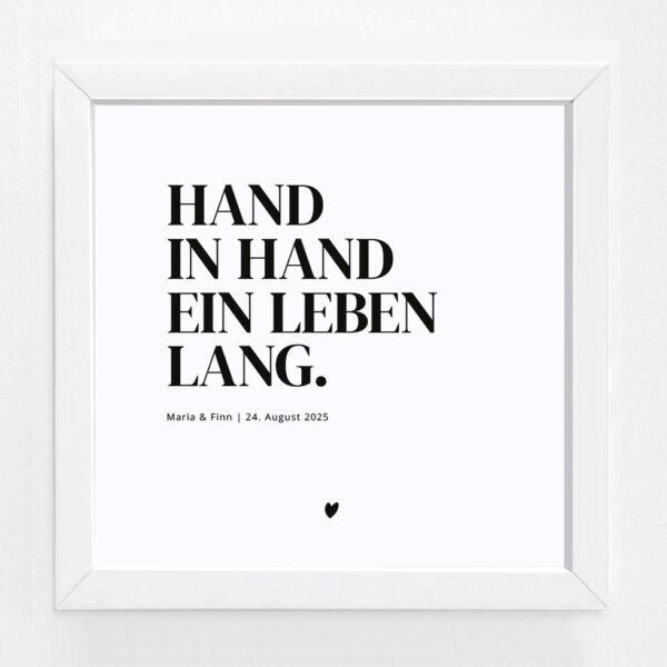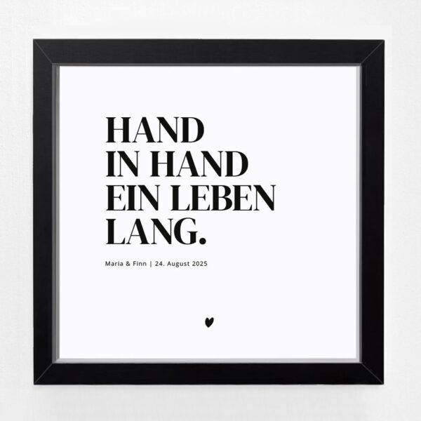 Personalisierbares Bildgeschenk im 3D-Rahmen „Spruch Hand in Hand“