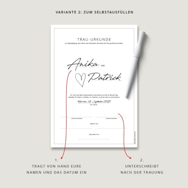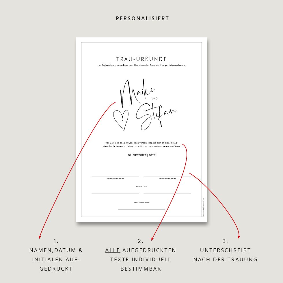 Deshalb ist das Unterzeichnen einer Hochzeitsurkunde wie ein abschließendes Trau-Ritual, das dieses Versprechen bei der standesamtlichen, kirchlichen oder freien Trauung zusätzlich besiegelt und für immer festhält.