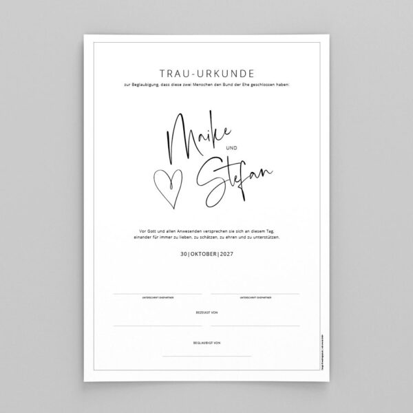 Macht euer Eheversprechen mit einer Trau-Urkunde unvergesslich