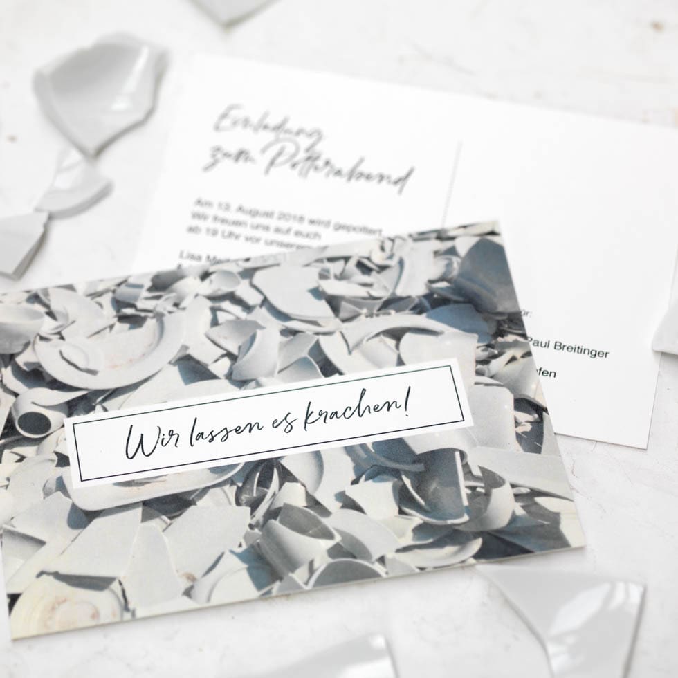 Polterabend Einladungskarte „Polterscherben“