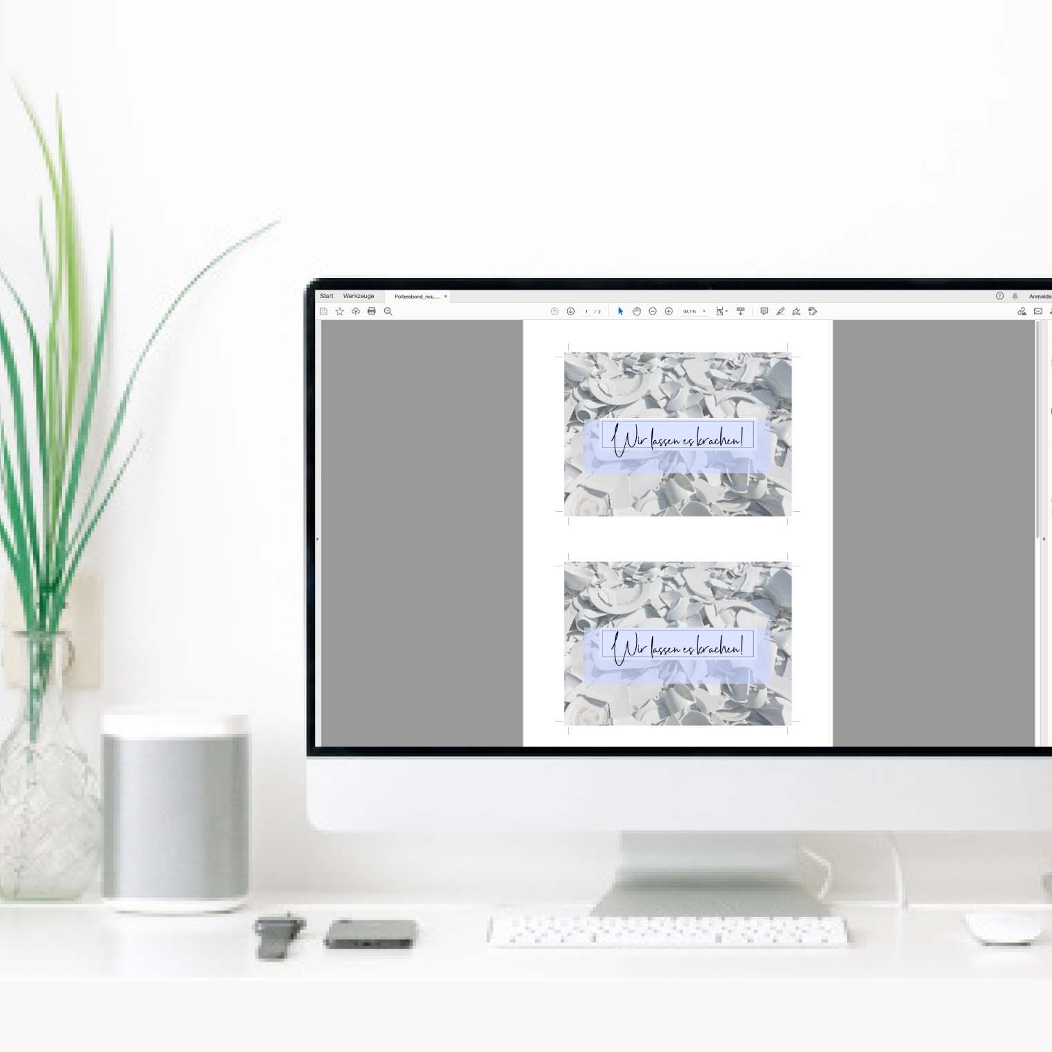 Unsere Polterabendkarten gibt es als fertig gedruckte Karte möchtet oder PDF zum Selberdrucken.