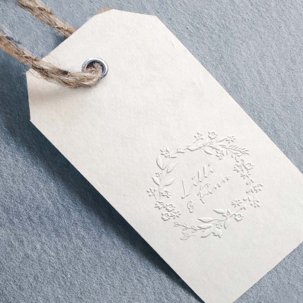 Ob auf der Karten, Banderolen, Anhängern, Briefumschlägen oder Gastgeschenken – ein gegeprägtes Emplem lässt sogar simples Druckerpapier zu hochwertigem Briefpapier werden und setzt immer einen faszinierenden haptischen Akzent: