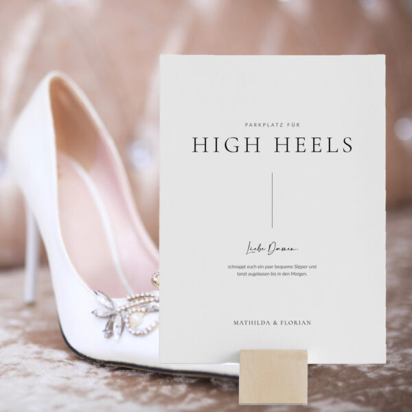 Gestaltet supereinfach ein tolles „High Heels Garage“ oder „Für müde Tanzfüße“ Schild für eure Hochzeit, das ihr problemlos selber drucken oder direkt bei uns auf Acryl, Leinwand, Plakat oder Board drucken lassen könnt.