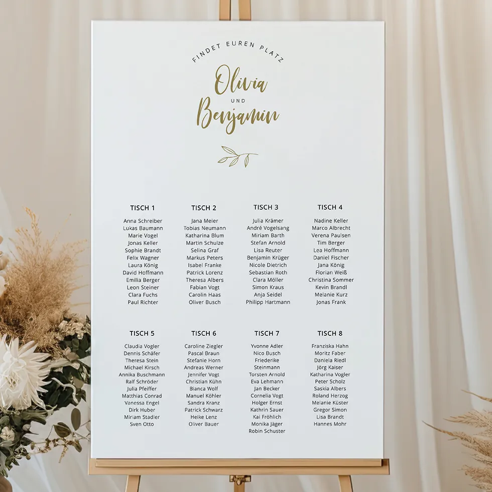 Gestaltet euren individuellen Sitzplan zur Hochzeit ganz nach euren Wünschen und erhaltet ihn als PDF zum Selberdrucken, Poster, stabile Platte, Leinwand, auf Acryl, oder als gerahmtes Bild.