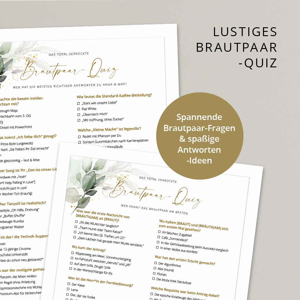 - 2 Brautpaarquiz-Bögen mit tollen Fragen und Antworten-Ideen