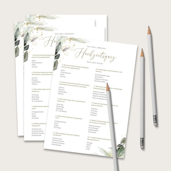 - 5 Hochzeitsquiz-Bögen von lustig bis knifflig