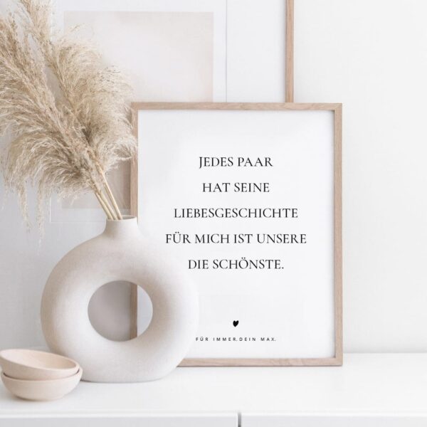 Gestaltet ein personalisiertes Sprüche Bild als Poster oder Bild – als wunderschönes persönliches Geschenk an euren Schatz zum Geburtstag, Jubiläum oder Valentinstag oder gestaltet eine besondere Überraschung zur Hochzeit.
