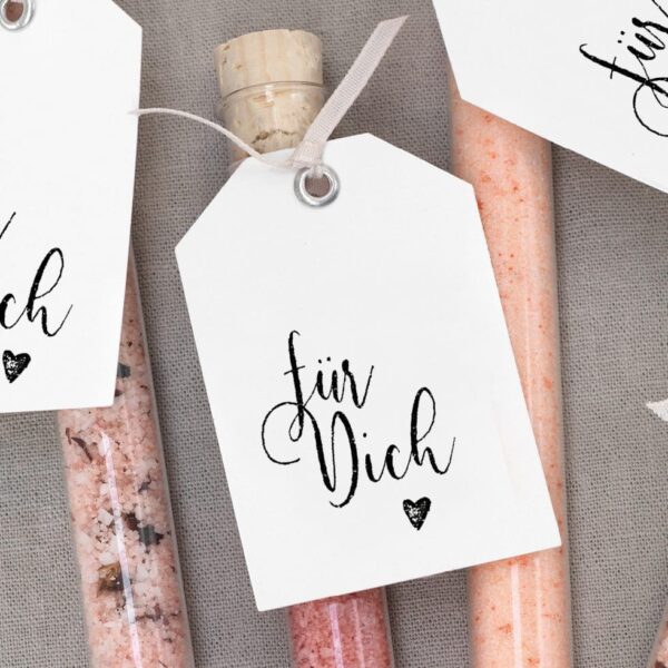 Mit der passenden Stempelfarbe könnt ihr den Schriftzug in beliebiger Farbe stempeln und sogar Stoff sowie andere Materialien bestempeln.