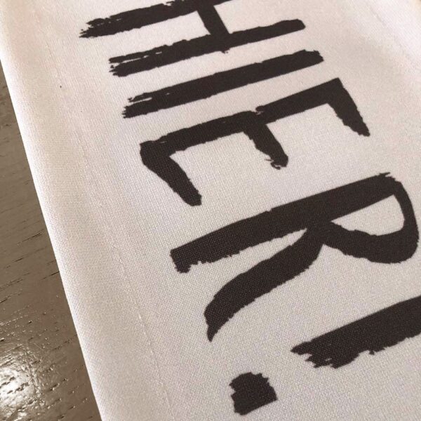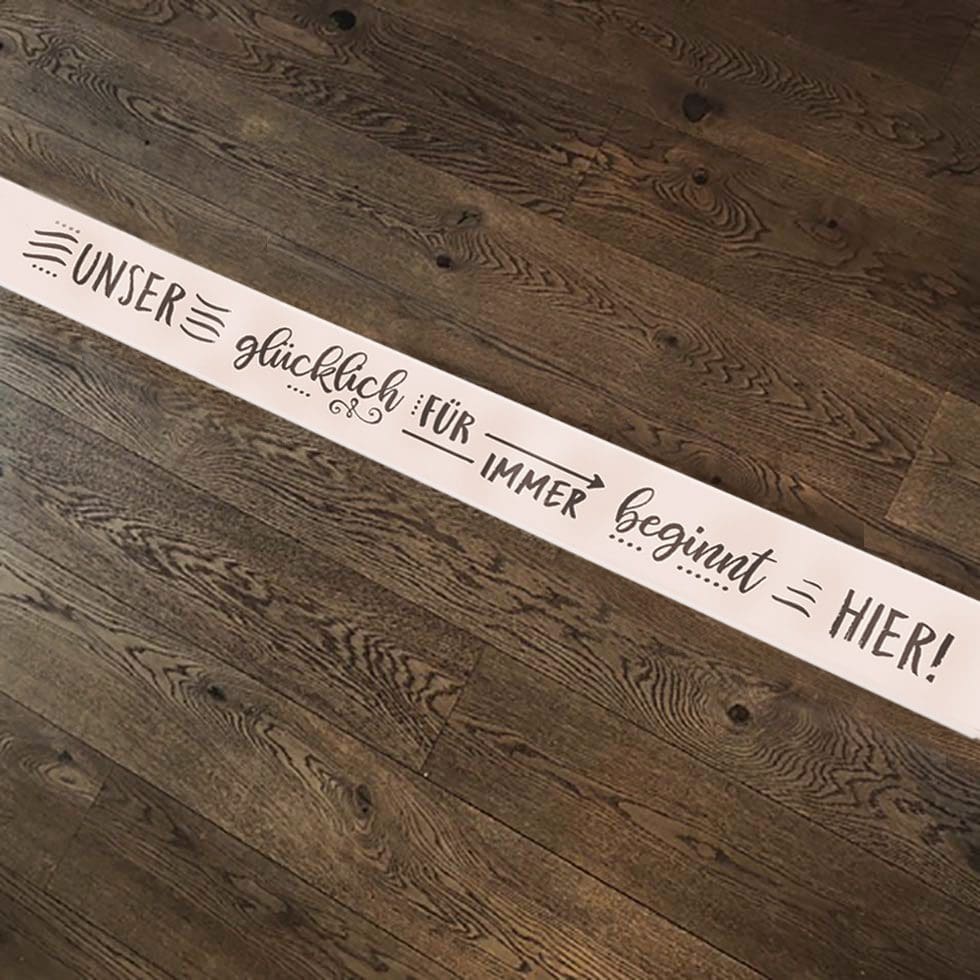 Überrascht das Brautpaar mit dem „Unser „Glücklich für immer beginnt hier“- Stoffbanner nach der Trauung oder nutzt es für die verschiedensten Zwecke bei der Hochzeit.