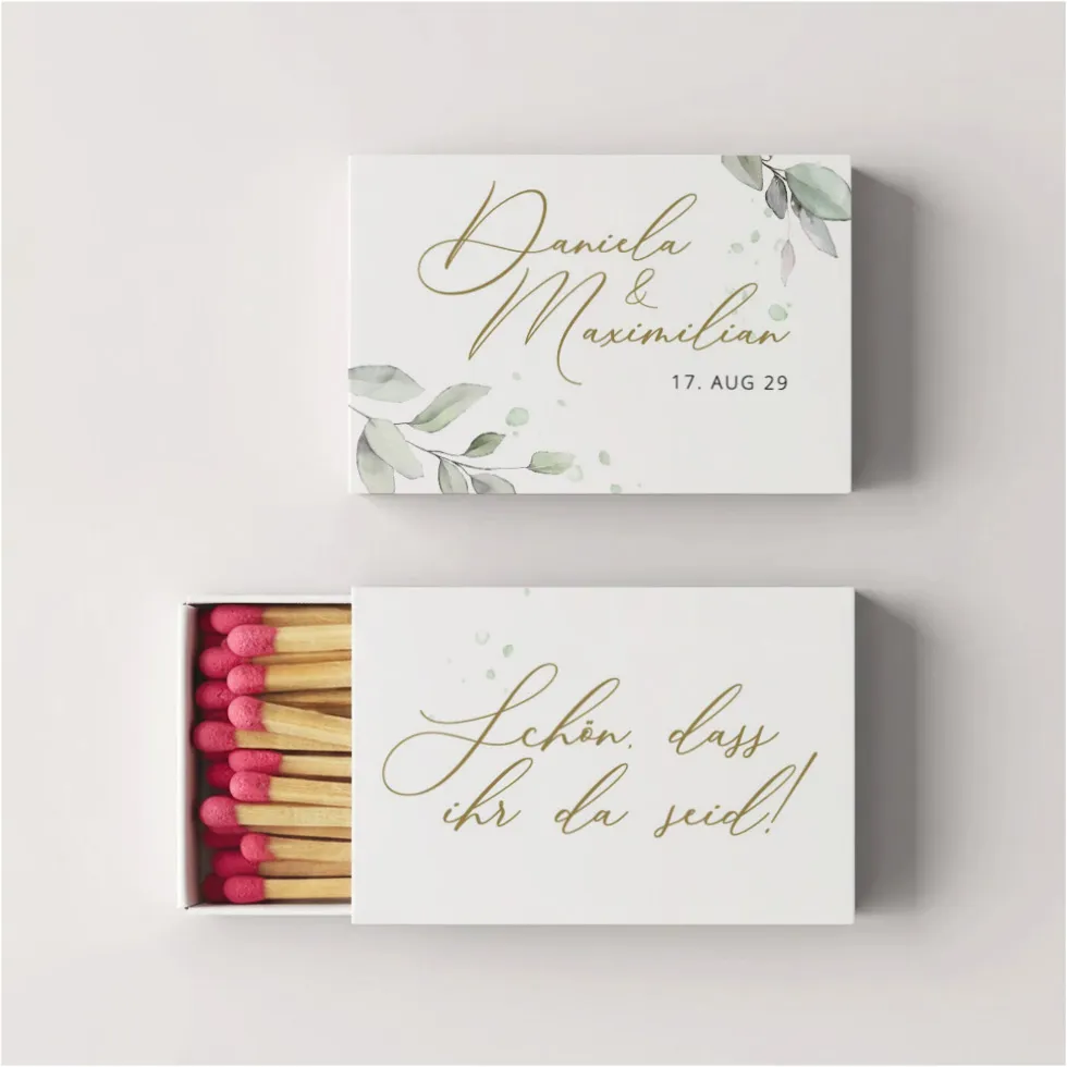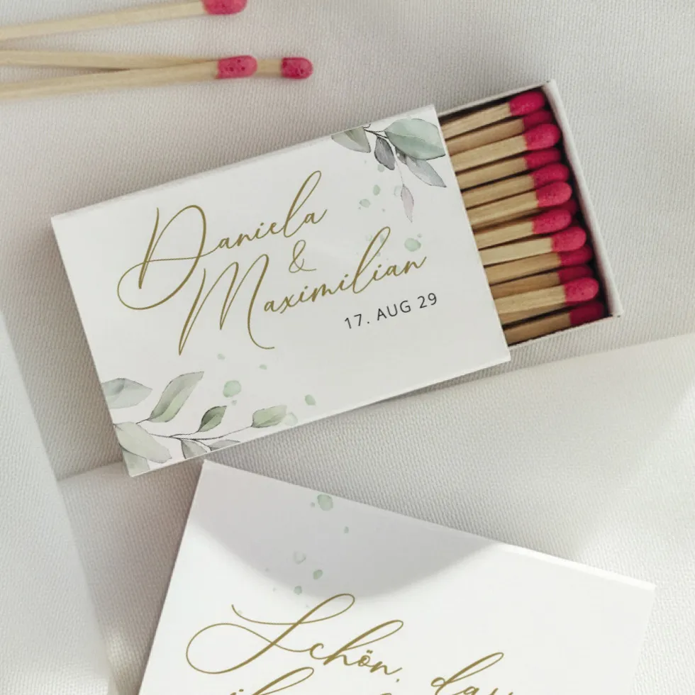 So wird jede Streichholzschachtel zum besonderen Detail: Gestaltet individuell personalisierte Banderolen und erhaltet die Druckvorlage, die ihr problemlos selber drucken und ausschneiden könnt.
