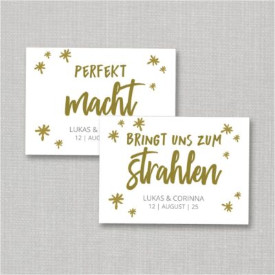 Als Gastgeschenk oder schönes Highlight für die Wunderkerzen: Mit unserer Vorlage könnt ihr dieses tolle Accessoire für eure Hochzeit extrem preiswert, schnell und mit persönlichem Aufdruck realisieren.