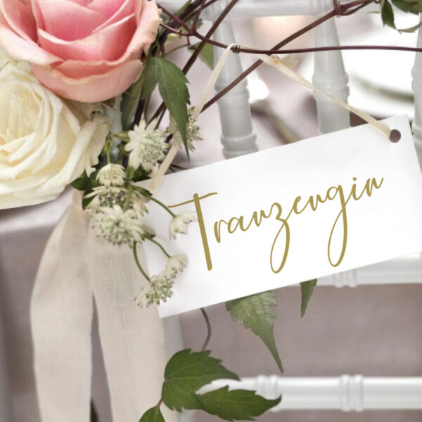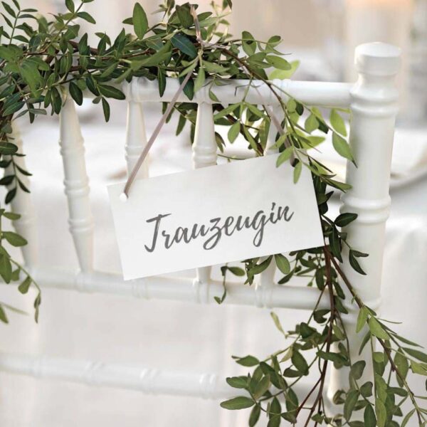 Ob bei der Trauung oder im Festsaal – mit Stuhlschildern wird jeder Stuhl doppelt besonders.