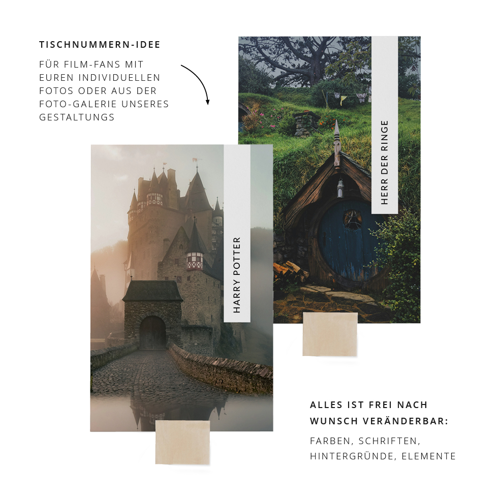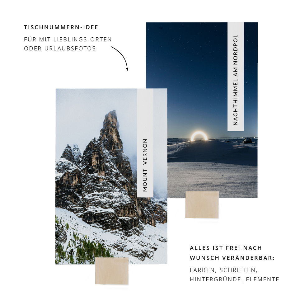Gestaltet absolut individuelle Gruppentischkarten für jeden Tisch oder nutzt sie für einen Tischplan: