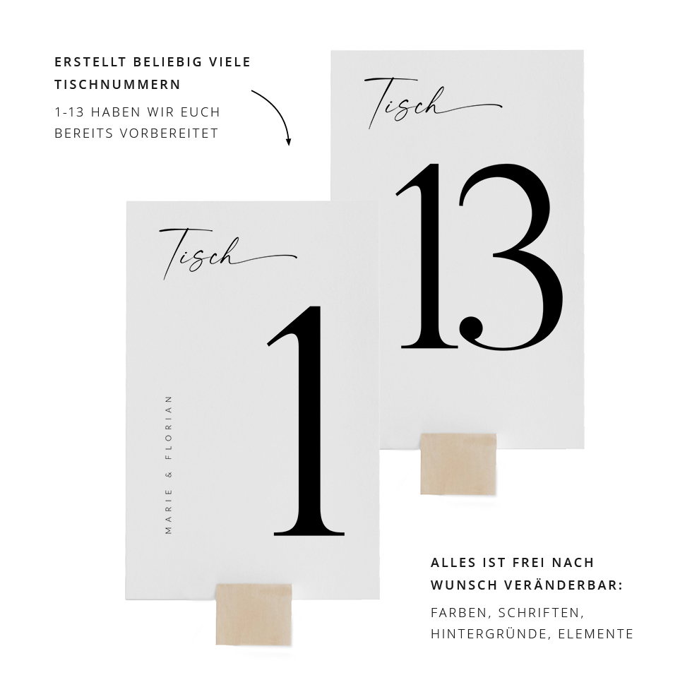 - Vorlage: PDF-Vorlage zum Selberdrucken für Tischnummern von 1-20