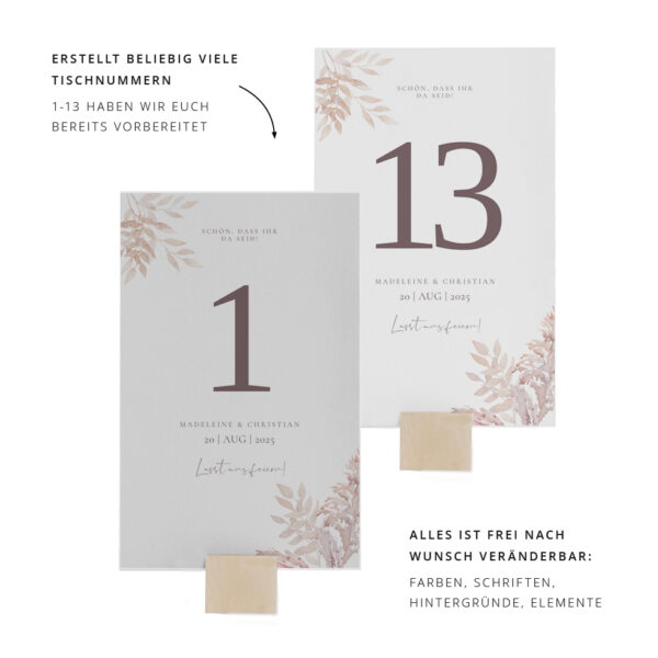 Gruppentischkarten Pampas Boho