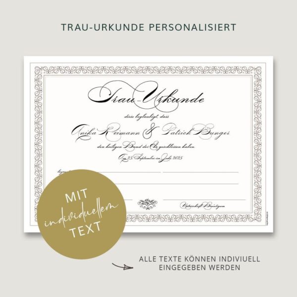 Dadurch ist sie kein bürokratisches Dokument, sondern der sehr emotionale Anker eures Versprechens, den ihr in den Händen halten, mit nach Hause nehmen und in einem Rahmen aufbewahren könnt.