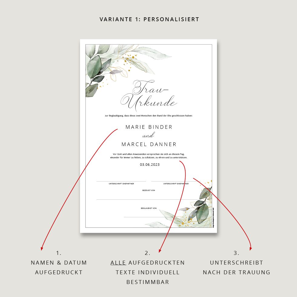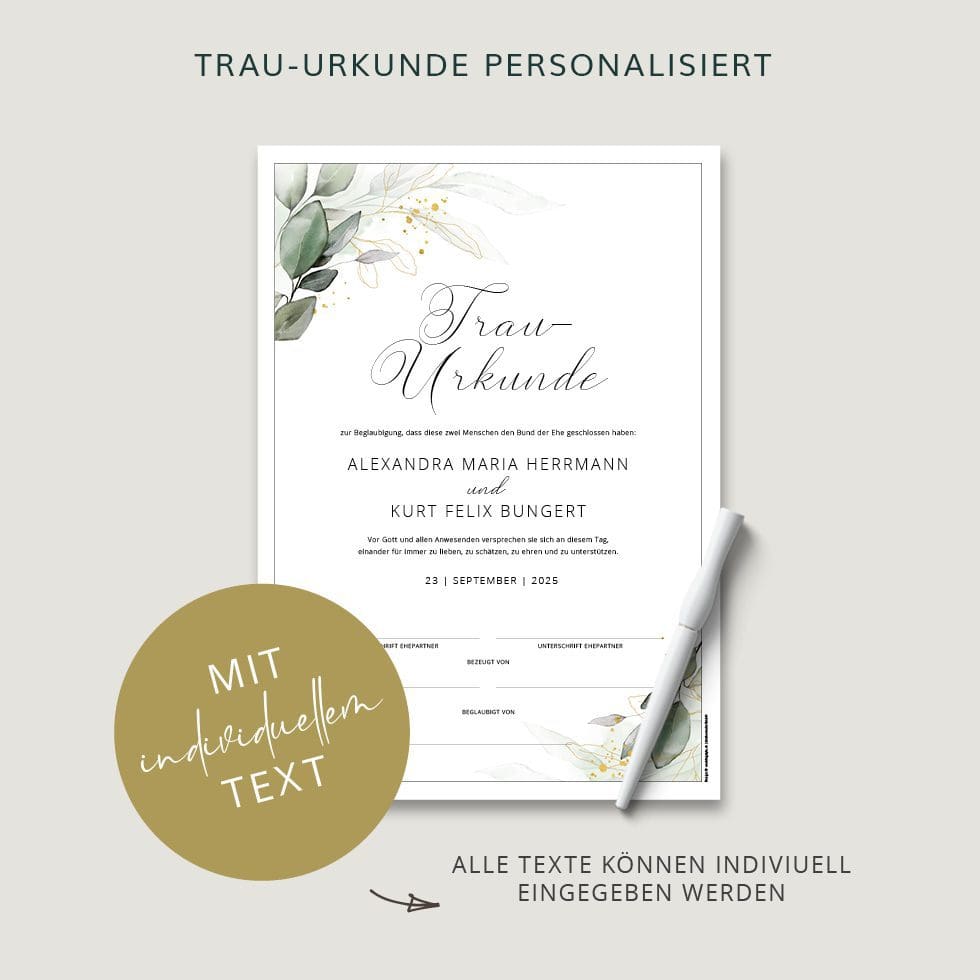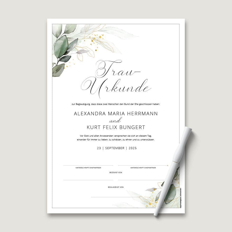 Macht euer Eheversprechen mit einer Trau-Urkunde unvergesslich