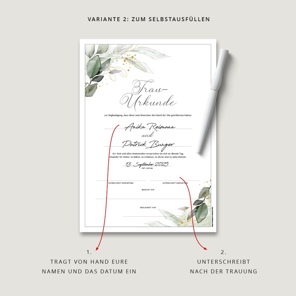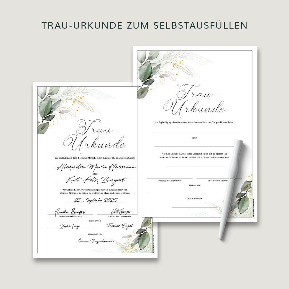 Deshalb ist das Unterzeichnen einer Hochzeitsurkunde wie ein abschließendes Trau-Ritual, das dieses Versprechen bei der standesamtlichen, kirchlichen oder freien Trauung zusätzlich besiegelt und für immer festhält.
