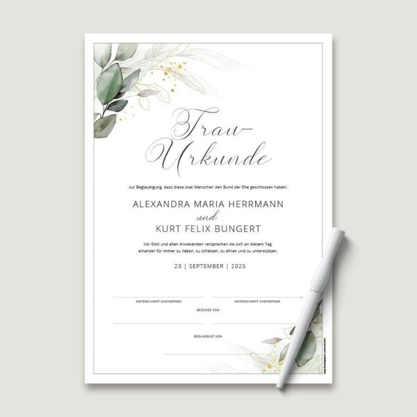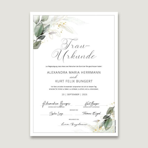 Trau-Urkunde „Eukalyptus“