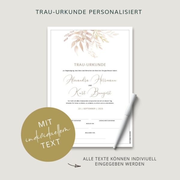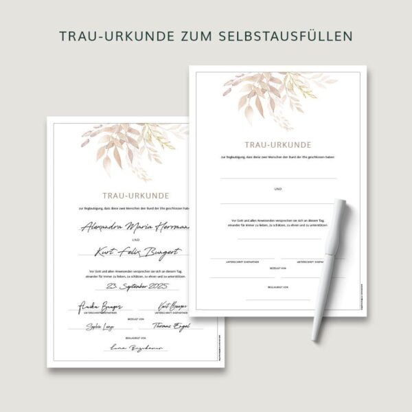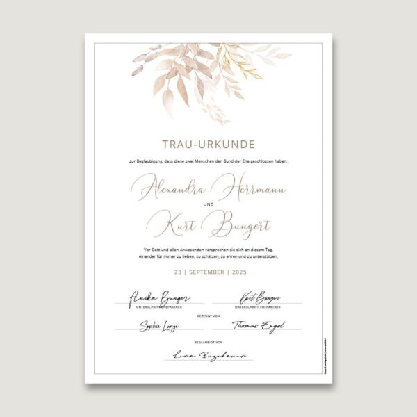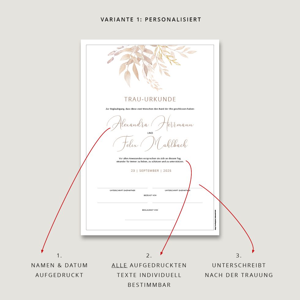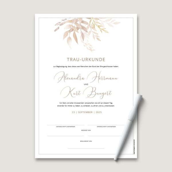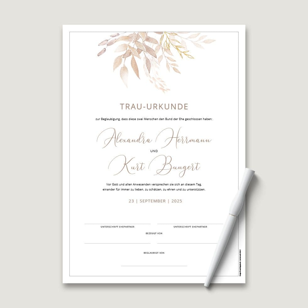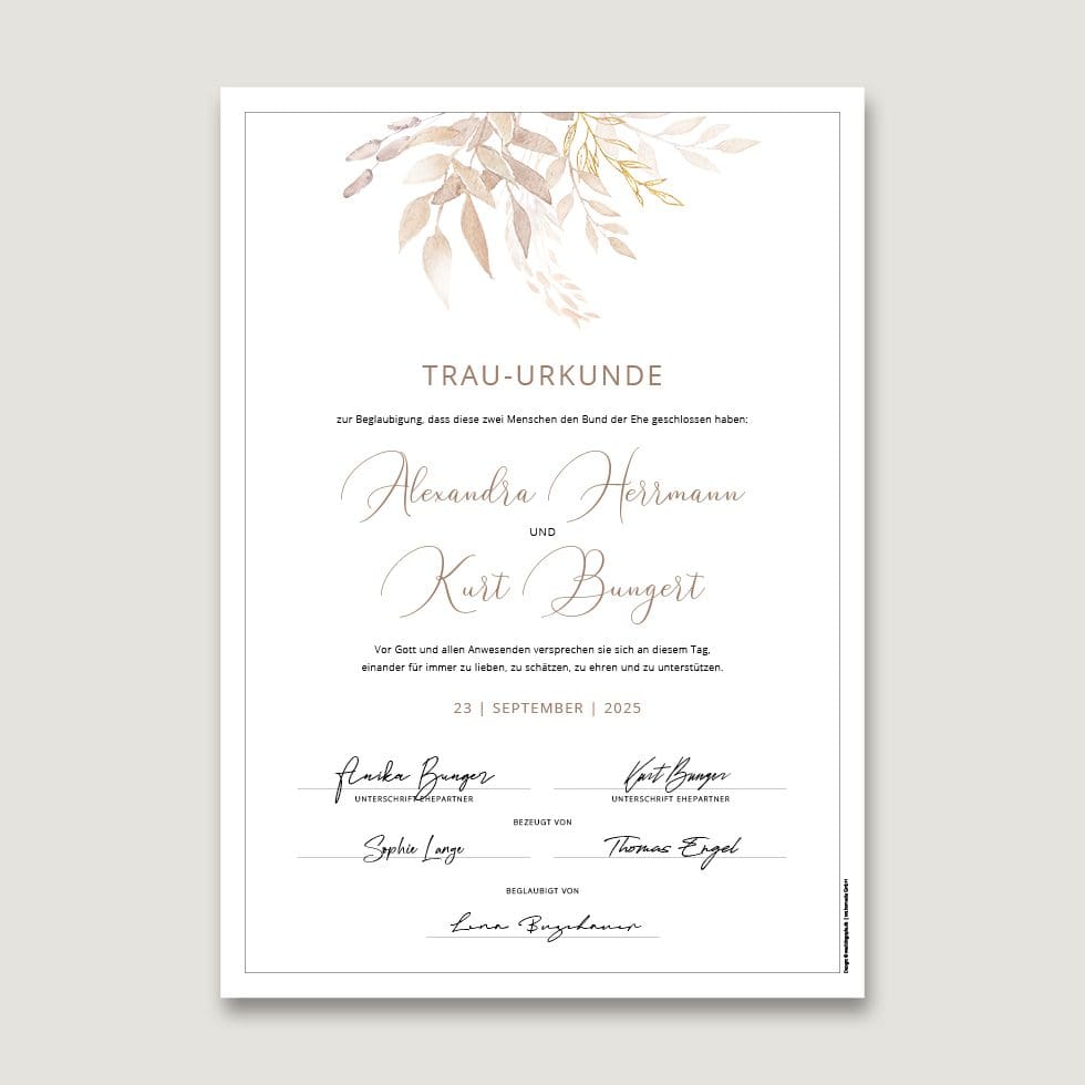 Macht euer Eheversprechen mit einer Trau-Urkunde unvergesslich