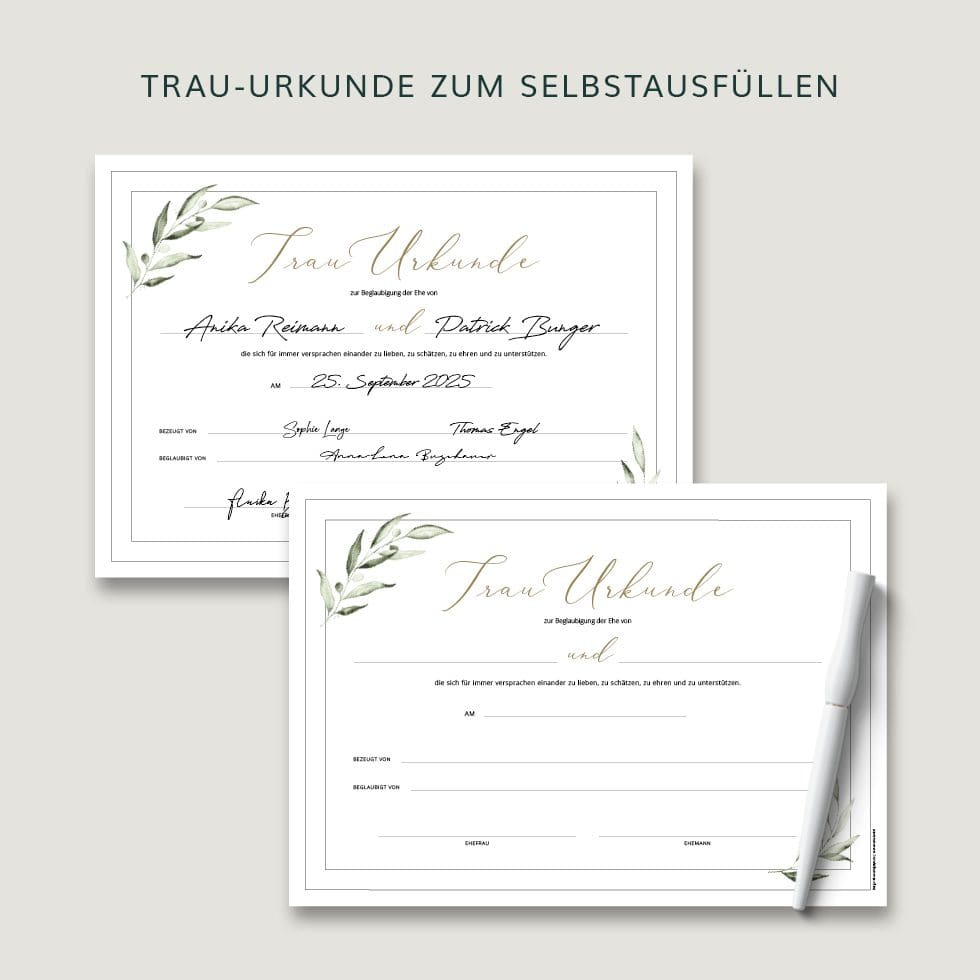 Deshalb ist das Unterzeichnen einer Hochzeitsurkunde wie ein abschließendes Trau-Ritual, das dieses Versprechen bei der standesamtlichen, kirchlichen oder freien Trauung zusätzlich besiegelt und für immer festhält.