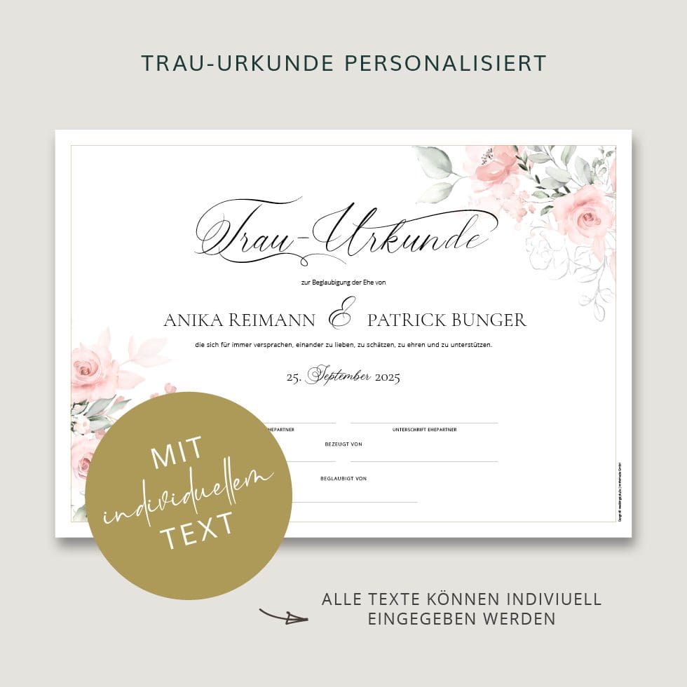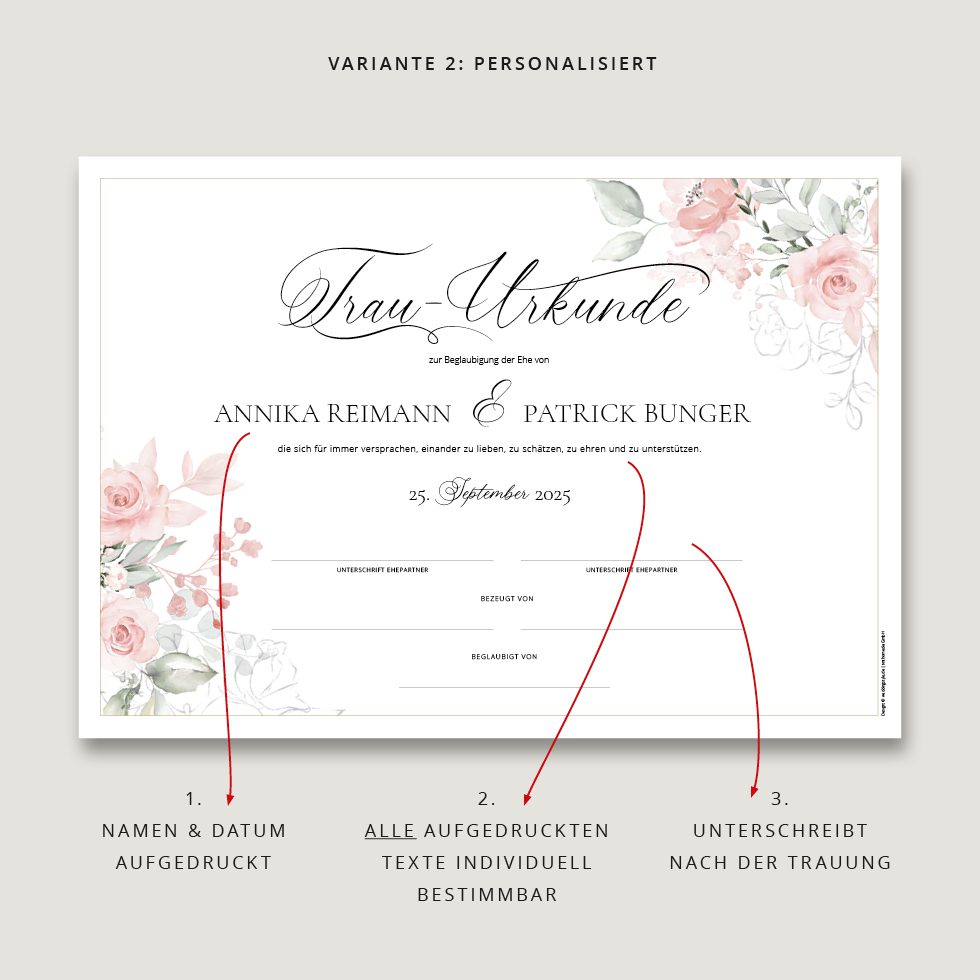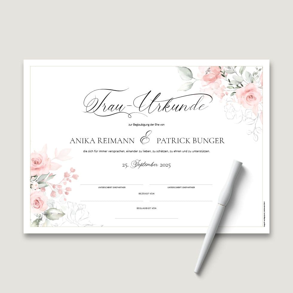 Macht euer Eheversprechen mit einer Trau-Urkunde unvergesslich