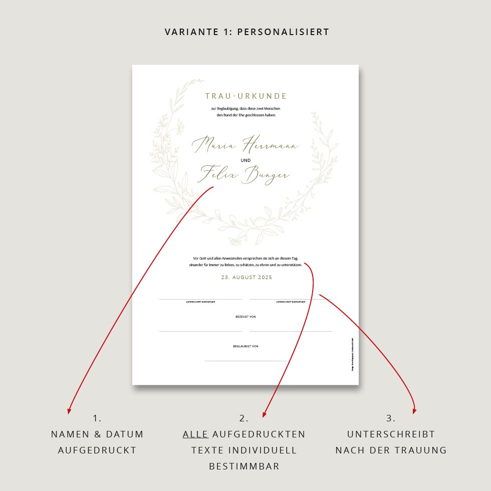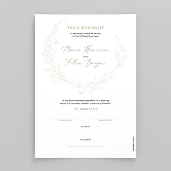 Macht euer Eheversprechen mit einer Trau-Urkunde unvergesslich