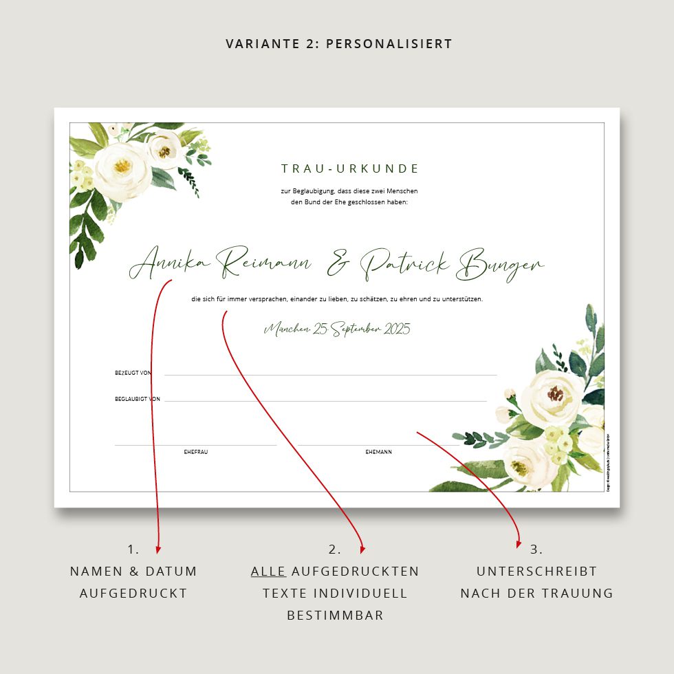 Macht euer Eheversprechen mit einer Trau-Urkunde unvergesslich