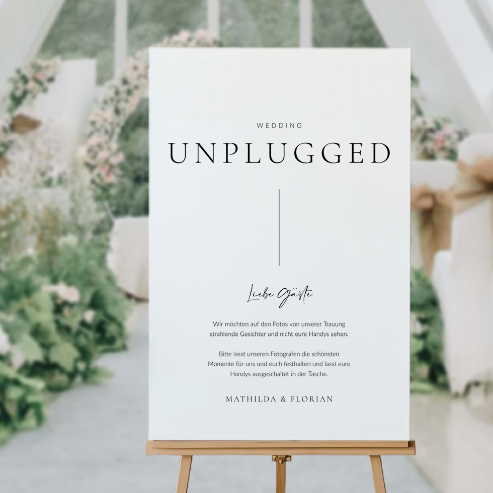 „Unplugged Wedding“ Schild für die Hochzeit – pure