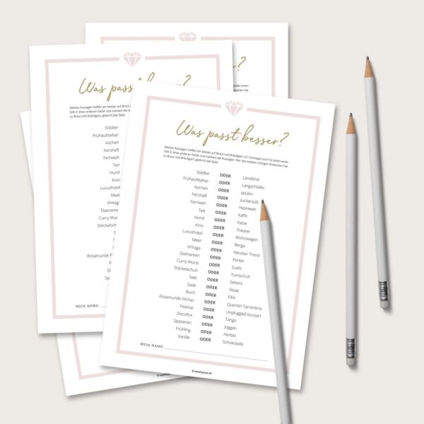- So oft ausdrucken, wie ihr die Vaorlagen für euren JGA oder die Hochzeit benötigt.