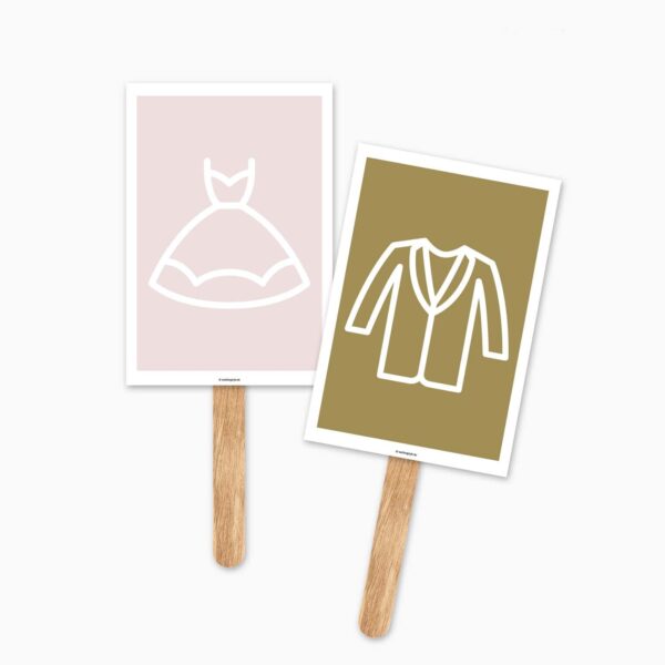 Die Hochzeitsschilder mit den Symbolen für Braut und Bräutigam werden nach dem Drucken einmal gefaltet,