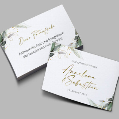 - Wir übernehmen euren Text in unser Layout und senden euch anschließend eure individuell gedruckten Karten auf 300 g Naturkarton.