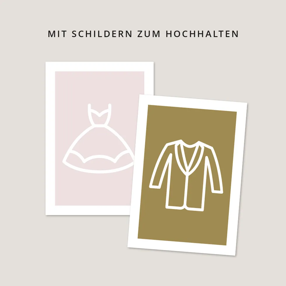 Wir liefern euch die fertig ausgedruckten Bögen gedruckt auf feines dickes Papier. Inklusive 2x2 Schilder (Symbol Braut und Bräutigam) für beide zum Hochhalten bei der Hochzeit.